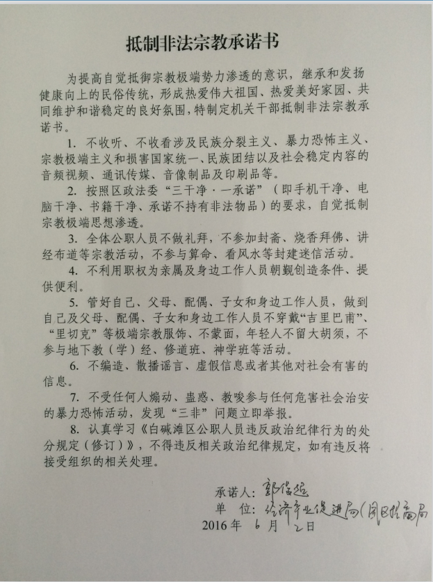 抵制非法宗教承诺书(郭俊超)