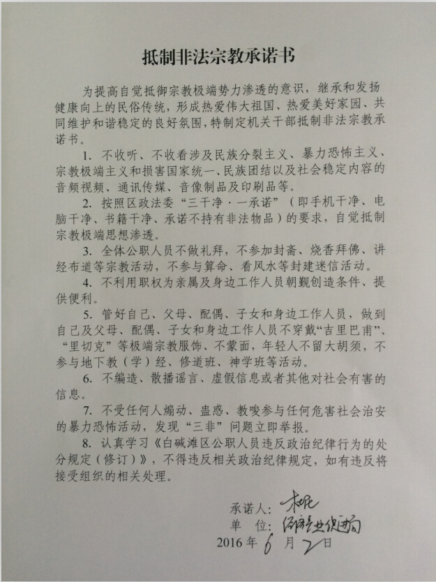 抵制非法宗教承诺书(杜民)