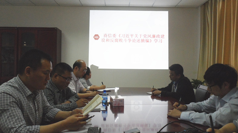 2015年4月20日下午,商信委党支部第一党小组召开小组会议,集体学习《习近平关于党风廉政建设和反腐败斗争论述摘编》,深刻领会精神实质,理论上武装头脑,指导推动工作实践。