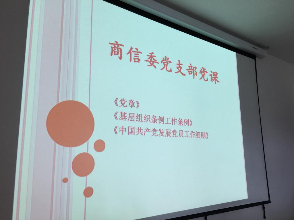 2015年6月19日,商信委党支部组织党员在广盛城投公司举行党支部会议,商信委、城投公司的党员、预备党员、入党积极分子共18人参加了此次支部会议。