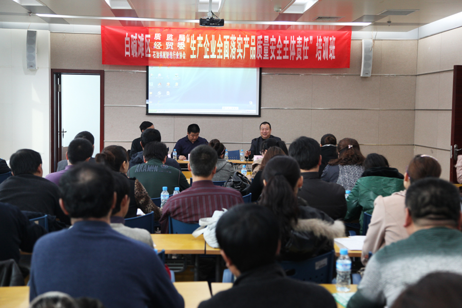 3月11日,由白碱滩区经贸委、白碱滩区质监局以及石油机械制造行业协会共同举办的“质量、标准、计量”培训课程圆满完成,本次共有辖区42家企业的87名人员参加了此次培训,副区长陶新生及经贸委主任王天德、质监局局长张文玑、行业协会秘书长王光涛亲临现场讲话,专家程川宝、阳繁、戚利华进行了授课。