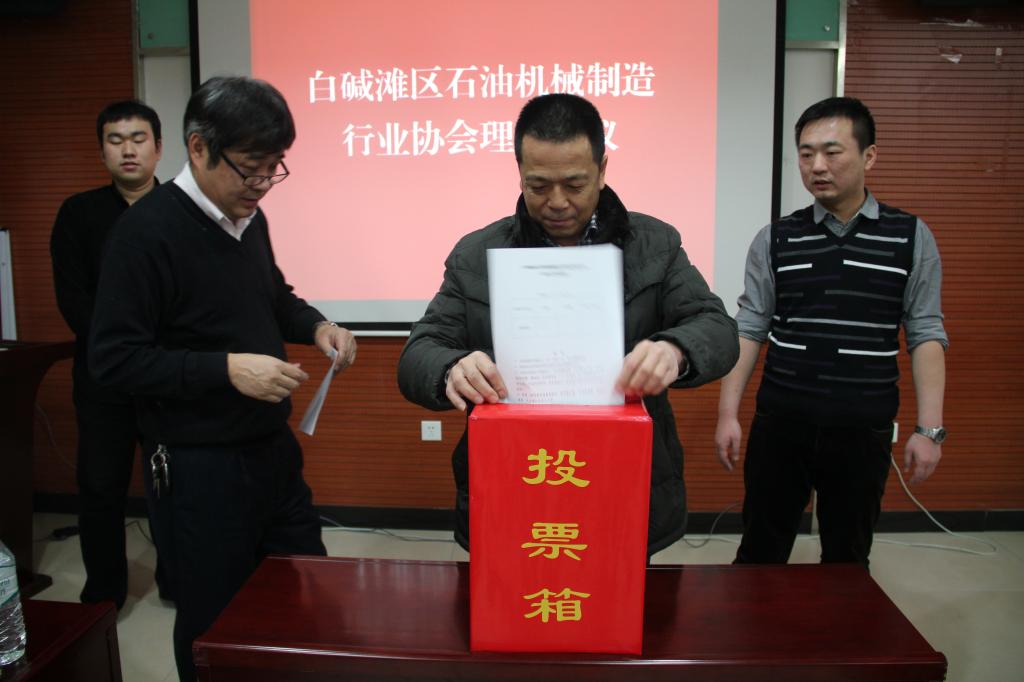 当天,根据行业协会章程,经过充分酝酿,两大行业协会理事会通过投票选举的方式选出新一届秘书长兼法人代表,其中塔林公司工会主席、持股会理事长彭春翔当选了石油机械制造行业协会秘书长兼法人代表,正诚公司董事会秘书、工会主席逄建当选石油化工行业协会秘书长兼法人代表。白碱滩区副区长边瑜、区商信委主任刘密、民政局局长苏永存等领导列席会议。