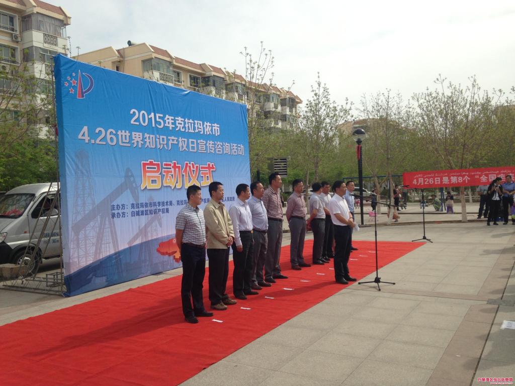在4·26世界知识产权日到来之际,由白碱滩区中兴路街道办、区商信委、区科技局、区知识产权局等多部门共同举办了的世界知识产权日宣传活动在沁园小区文化广场成功举行。